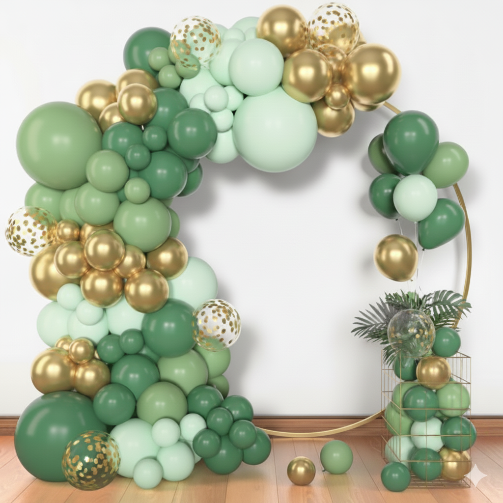 Arche de ballons vert sauge et dorĂ© â 110 piĂšces