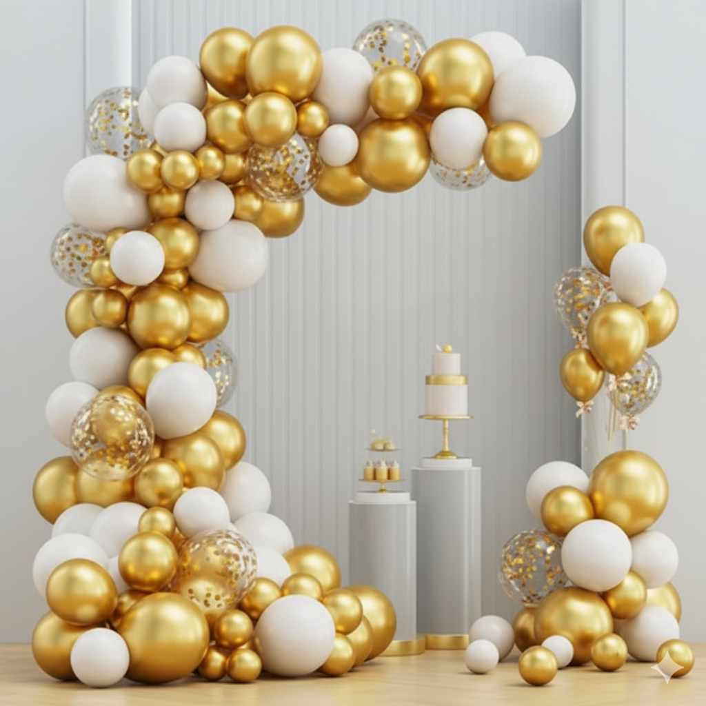 kit arche de ballons dorĂ© et blanc â 97 piĂšces