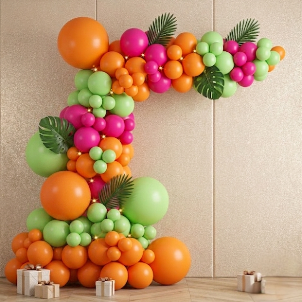 Arche de Ballons Tropical Orange, Vert clair & Fuschia — 92 pcs