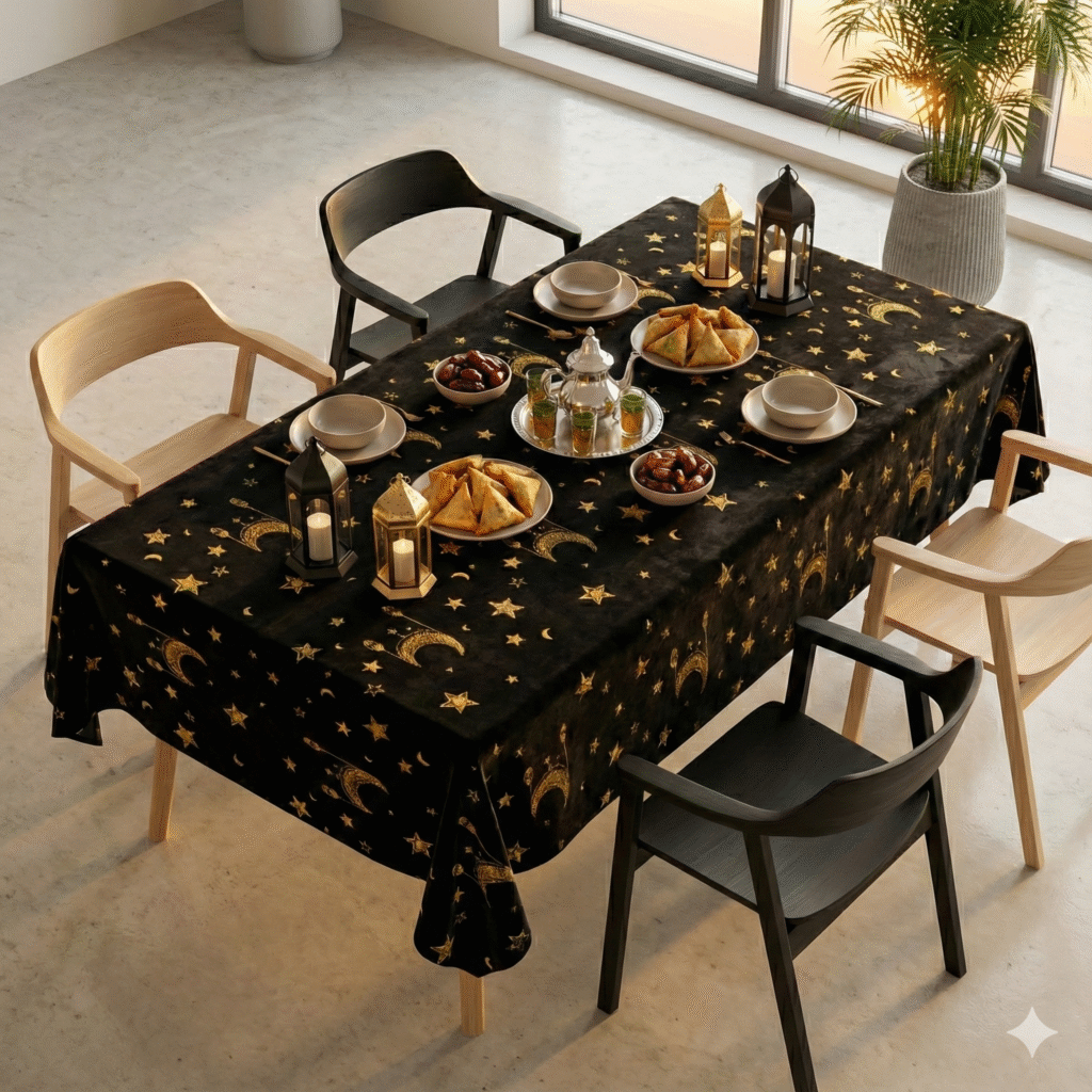Chemin de table noir et or motifs lune et etoiles
