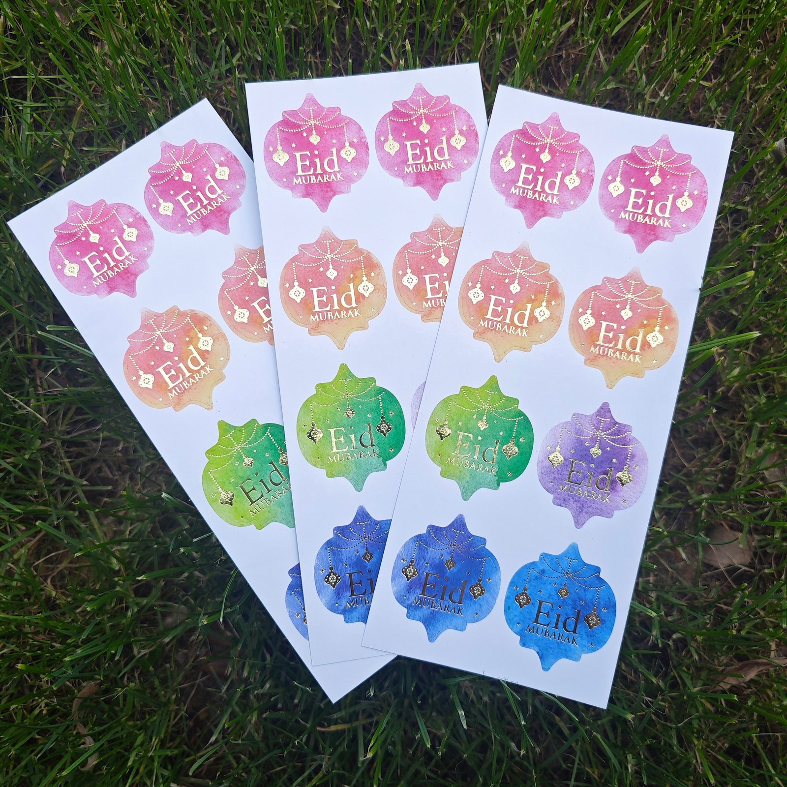 8 Autocollants Eid Mubarak Lanterne Multicolor