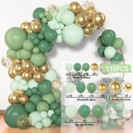 - Ballons verts (plusieurs nuances) : 12 cm, 24 cm, 30 cm et 45 cm.