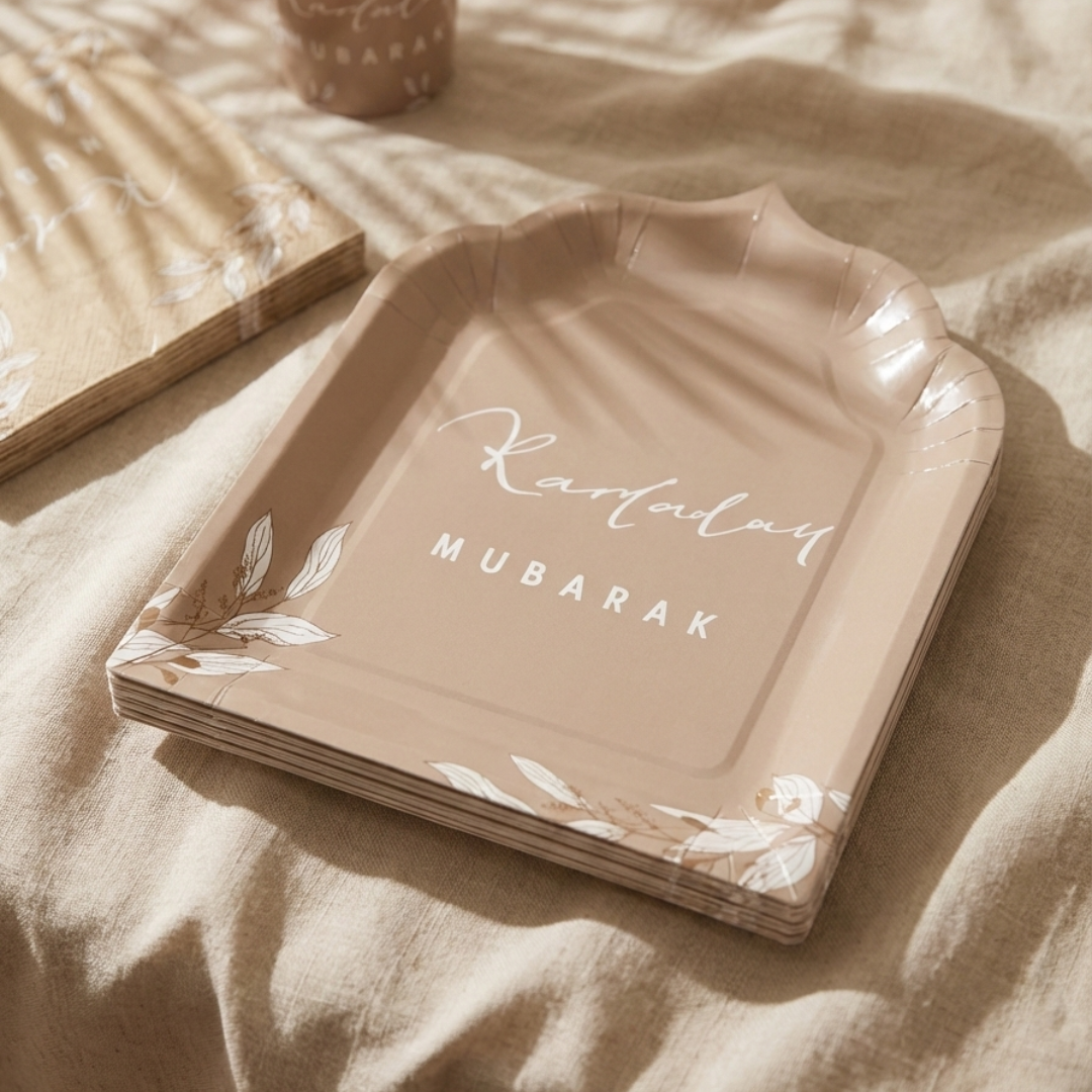 Cette assiette est le détail qui sublime vos moments de convivialité, transformant chaque échange en une attention précieuse. Commandez vos assiettes Ramadan Mubarak au design « nude » et floral pour une célébration placée sous le signe du partage et du raffinement !