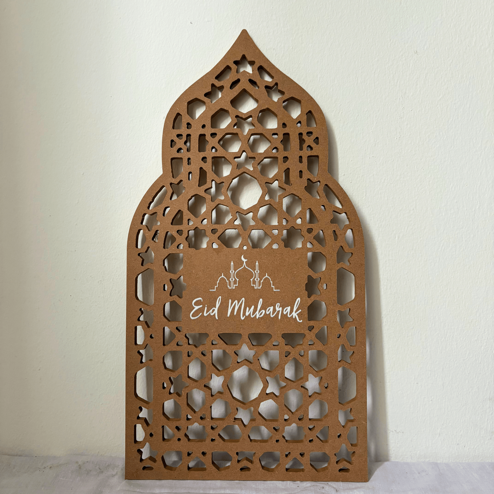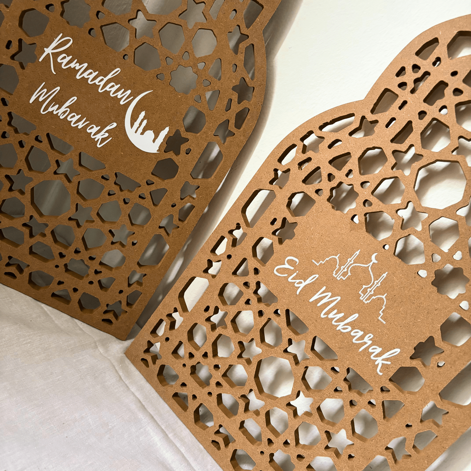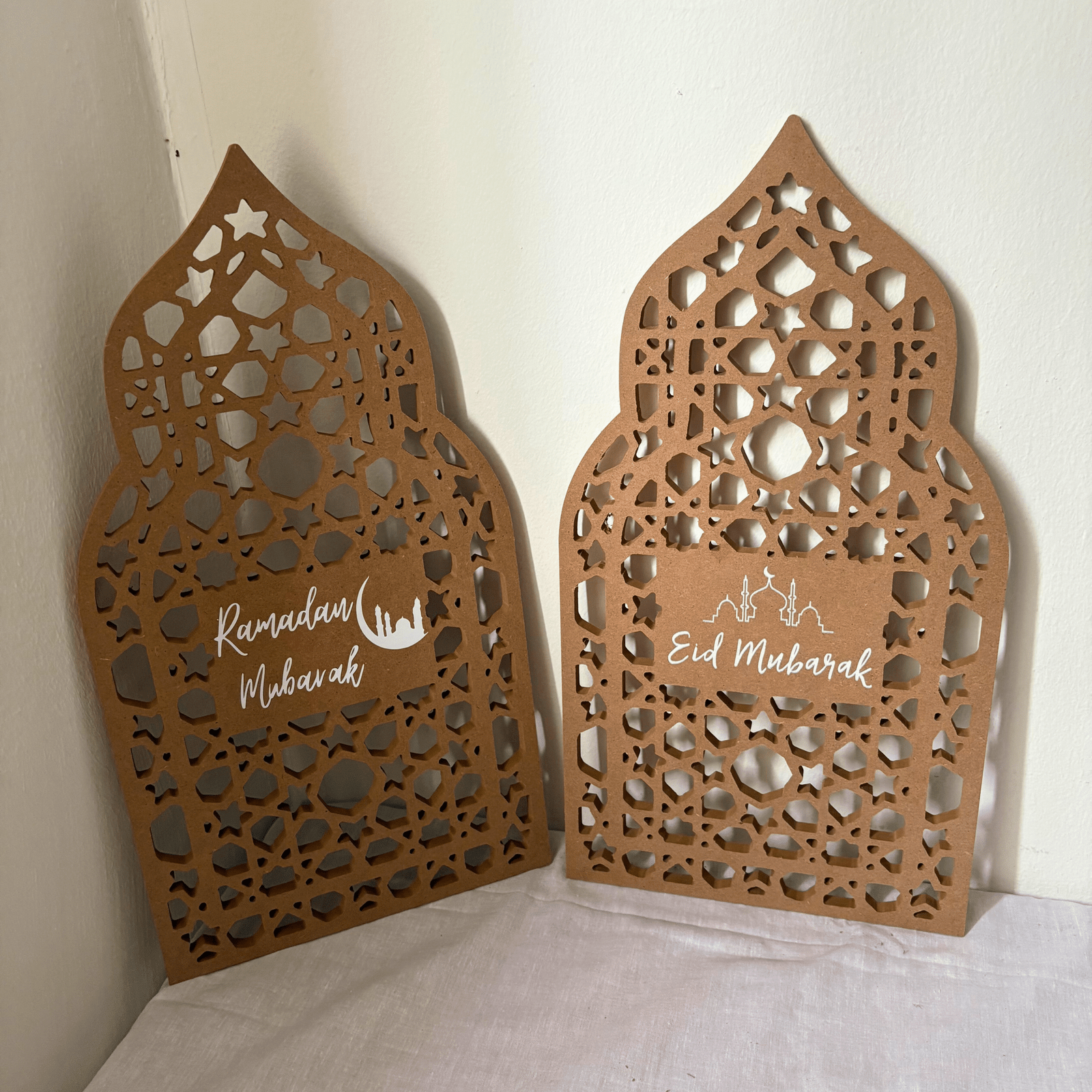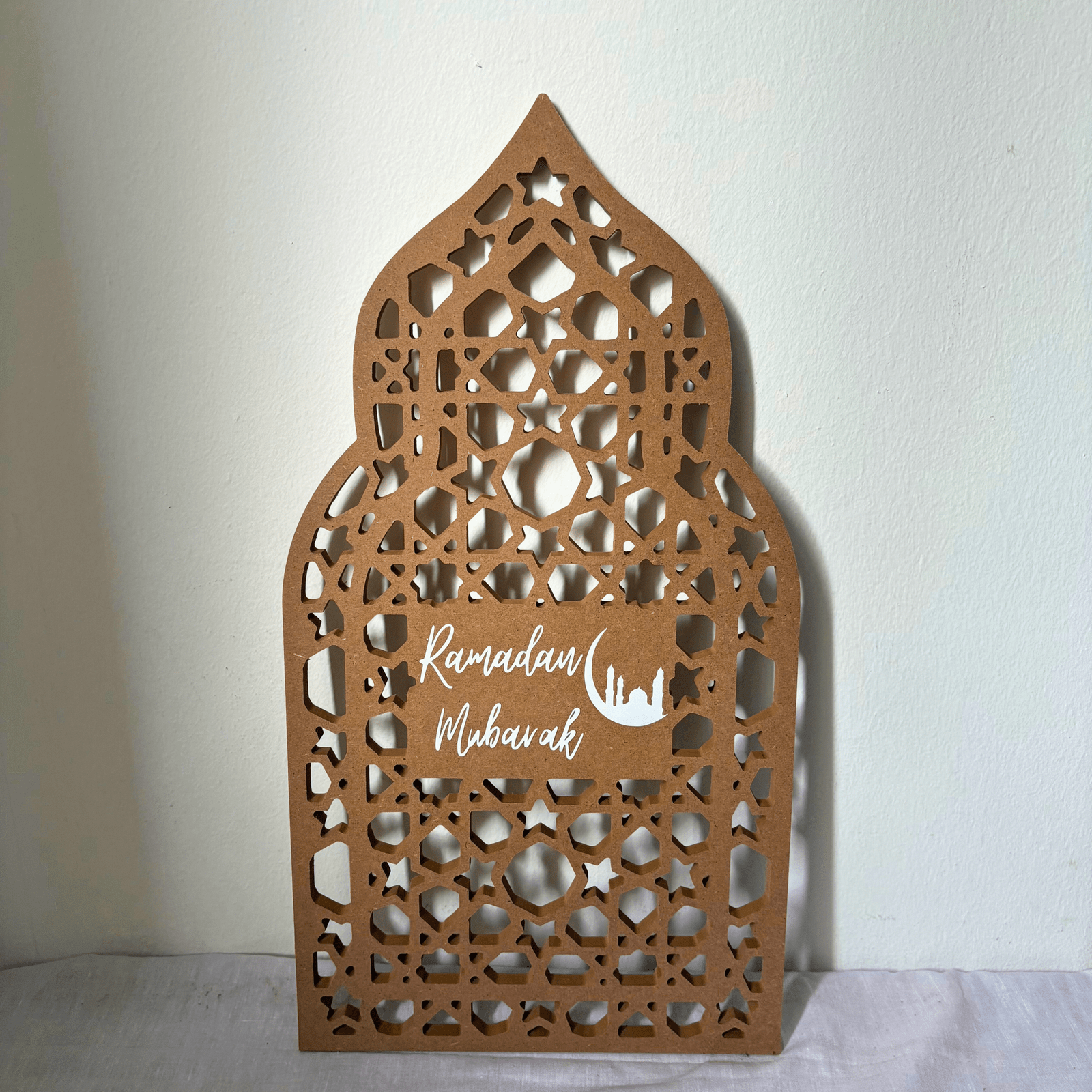 Découvrez notre Mini Backdrop Réversible : une pièce artisanale unique conçue pour évoluer avec votre décoration. D’un côté, accueillez le mois sacré avec une gravure « Ramadan Mubarak ». Le jour J, retournez-le simplement pour dévoiler un joyeux « Eid Mubarak ».