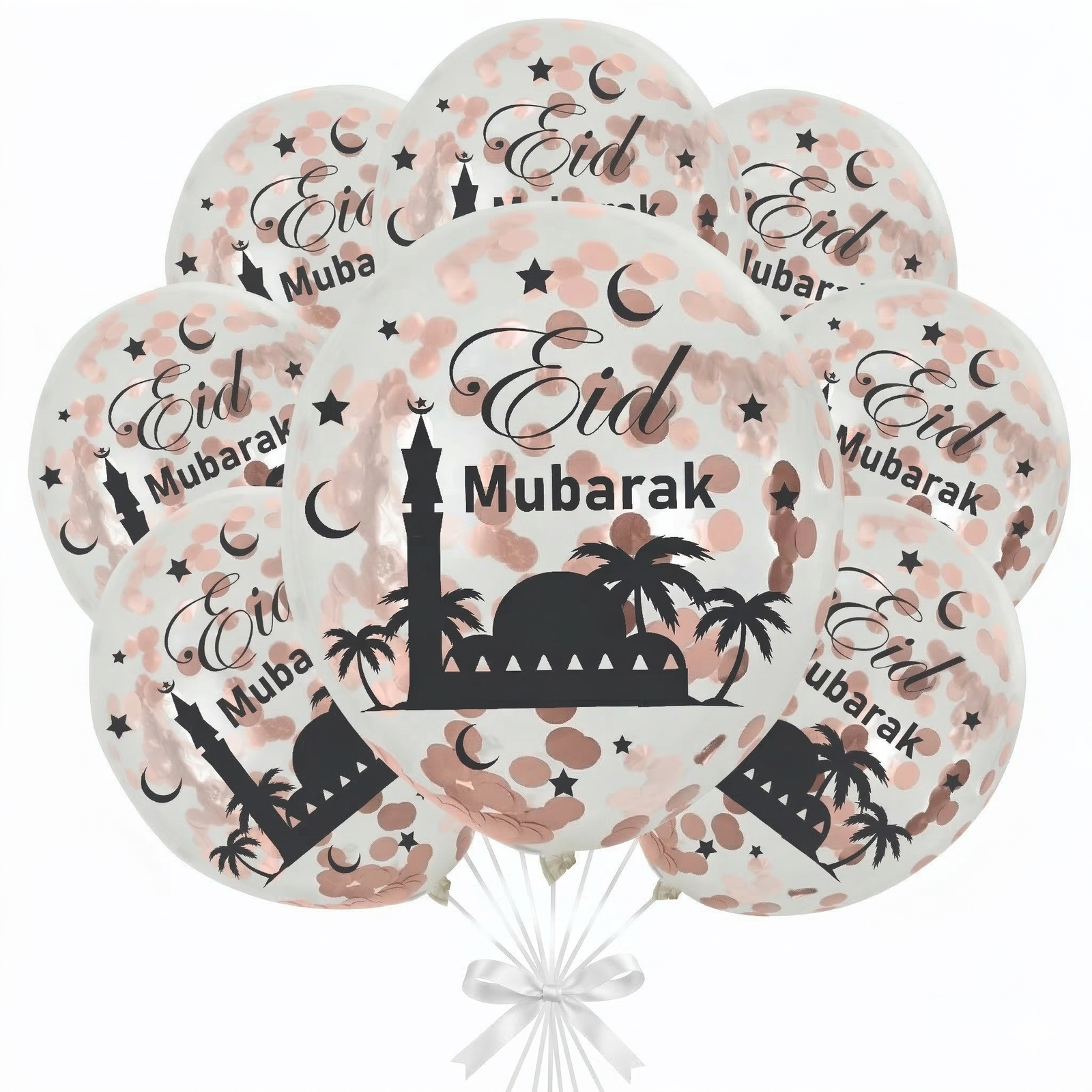 | Set de 10 Ballons | Ballons confettis rose – Inscription Eid Mubarak |